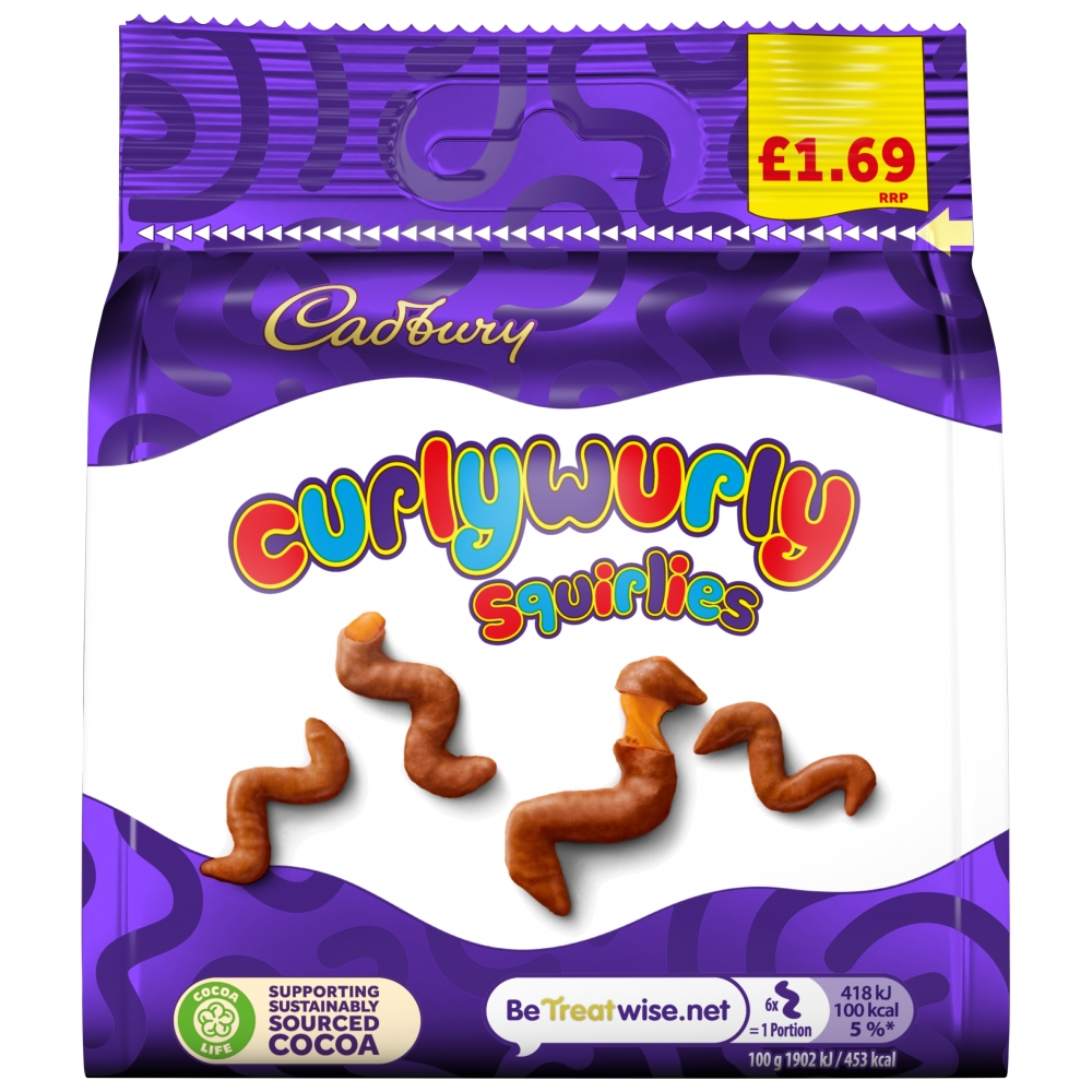 They’re curly, wurly, wavy, and squirly! Bite-sized pieces of delicious golden caramel wrapped in smooth Cadbury milk chocolate.